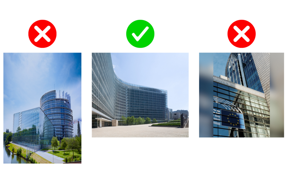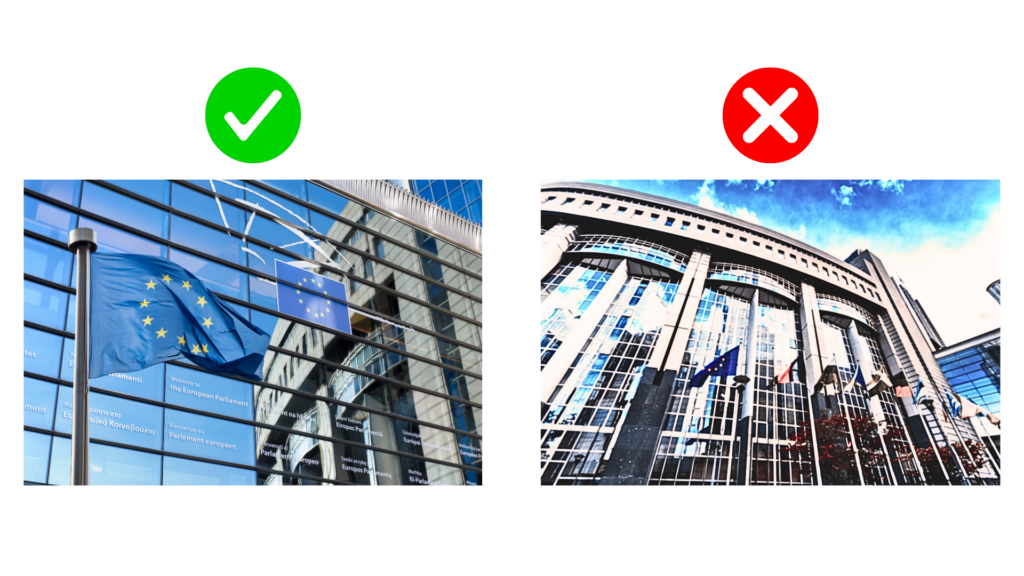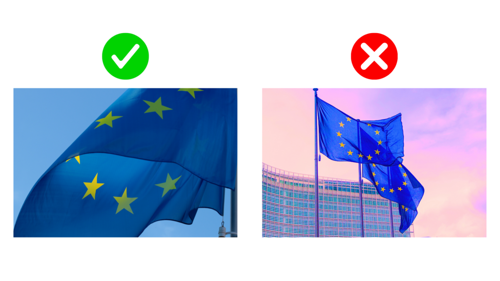 Avoid: Distorted images, cropping, or unnecessary frames.