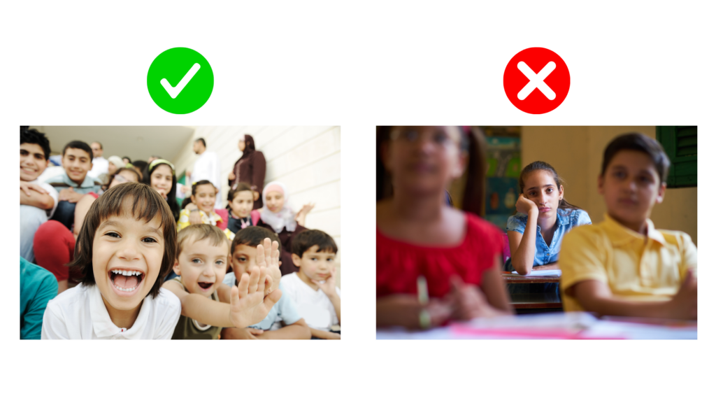 Avoid: Images with contradictory emotions (e.g., sad expressions in a post about positive change).