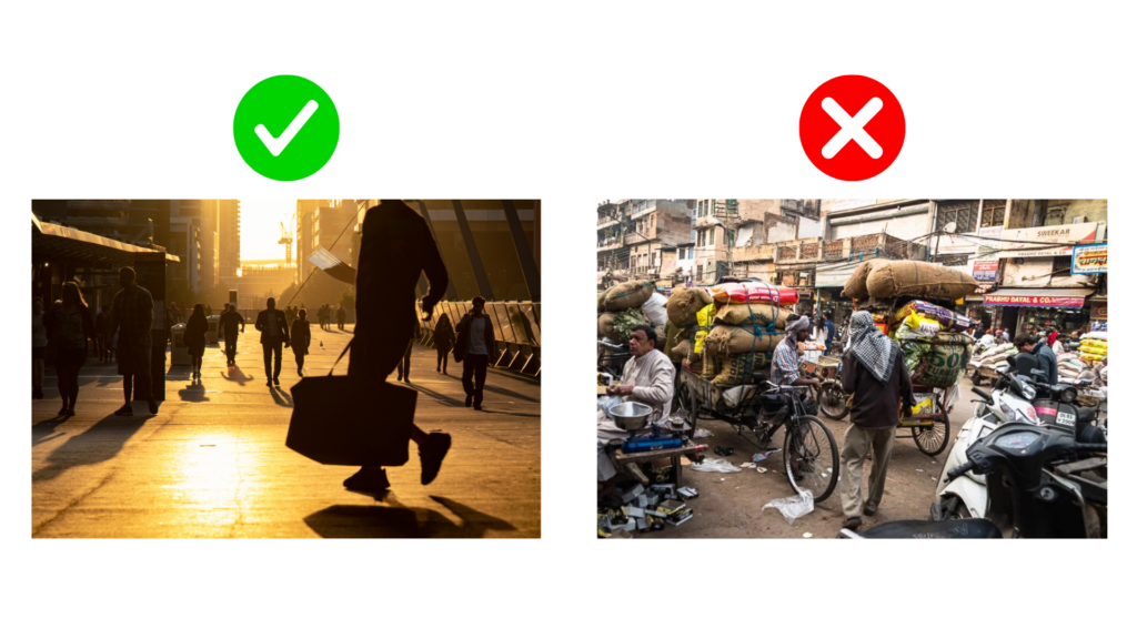 Avoid: Overcrowded scenes with no clear focal point.